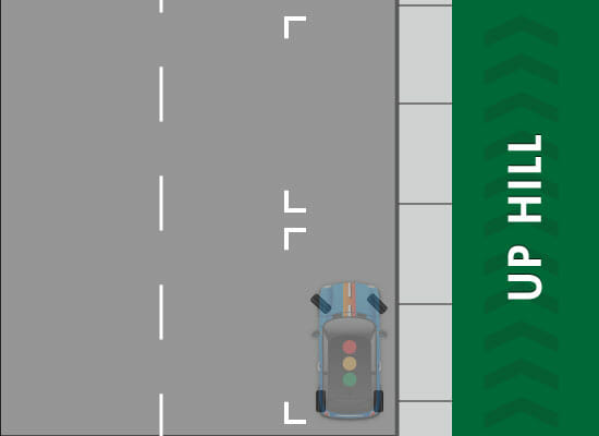 If you’re parking on an uphill grade without a curb, you’ll want to turn your wheels to point away from the road. This will help keep your car from rolling backward and into traffic. Make sure to set your emergency brake before turning your wheels.