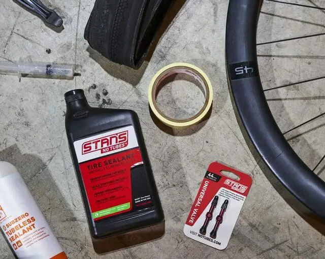 For this, you’ll need a special tubeless valve stem (available at most bike shops). Remove the regular inner tube from your tire, then thread the valve stem through the hole in the rim and screw it tight.3. Next, add some sealant to your tire.